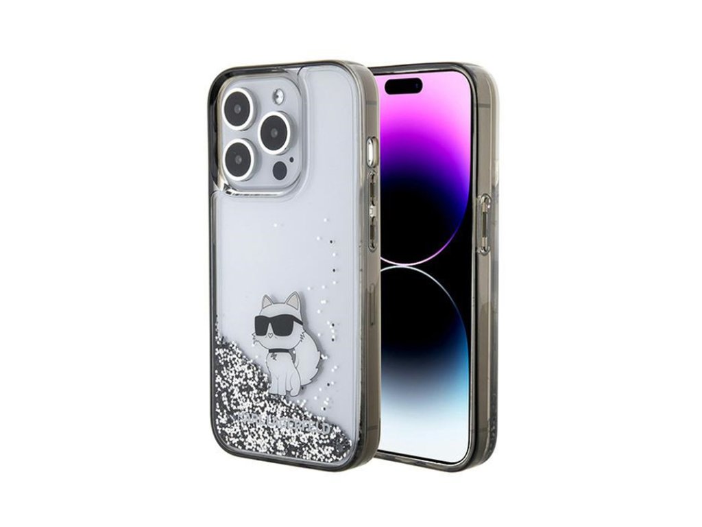Karl Lagerfeld Liquid Glitter Choupette - pouzdro pro iPhone 15 Pro (průhledné)