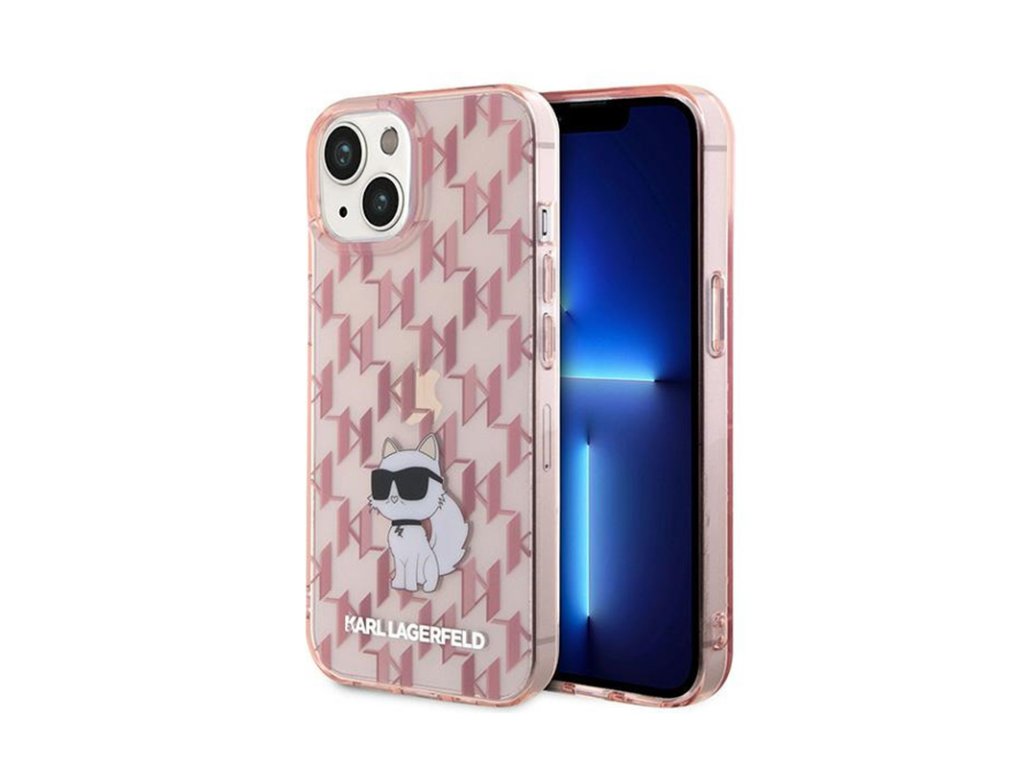 Karl Lagerfeld Monogram Choupette - pouzdro pro iPhone 15 (růžové)