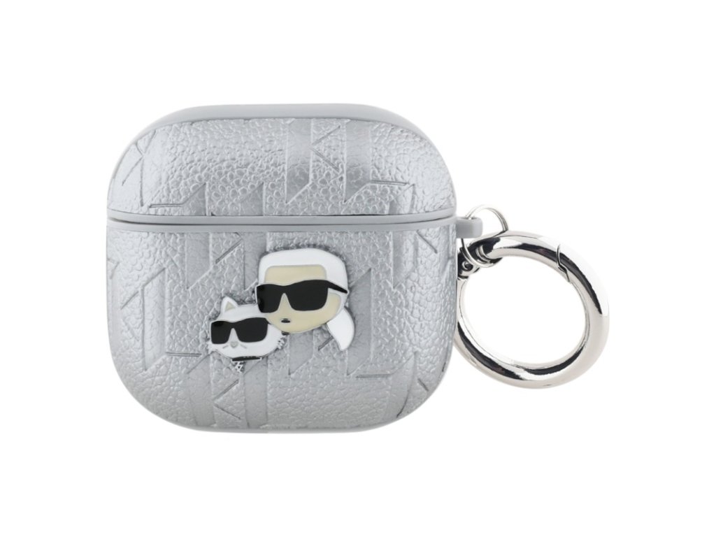 Karl Lagerfeld Monogram Karl & Choupette Head - Pouzdro AirPods 4 (stříbrná)