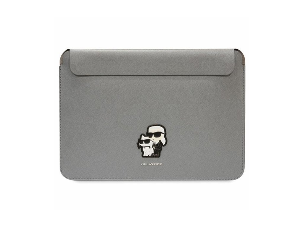 Karl Lagerfeld NFT Saffiano Karl & Choupette Sleeve - 16" pouzdro na notebook (stříbrné)