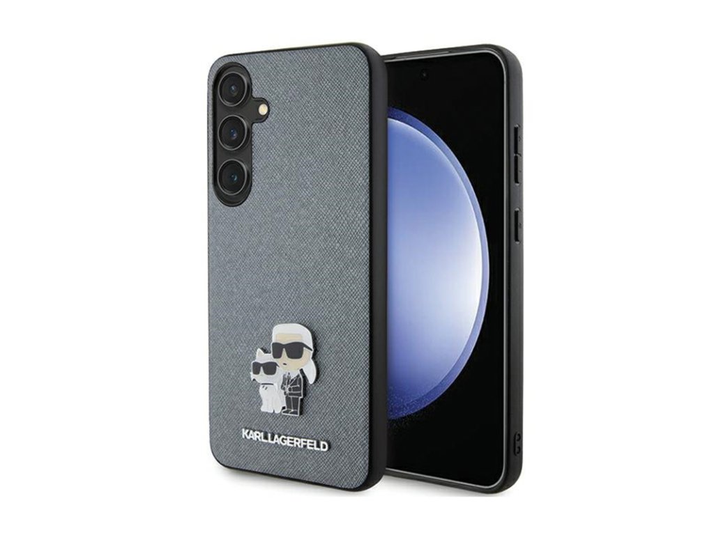 Karl Lagerfeld Saffiano Karl & Choupette Metal Pin - pouzdro pro Samsung Galaxy S24 (šedá)
