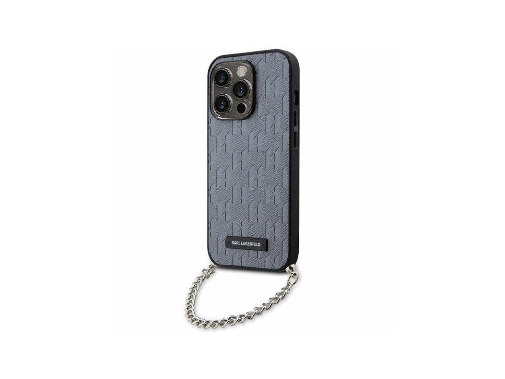 Karl Lagerfeld Saffiano Monogram Chain - pouzdro pro iPhone 14 Pro Max (stříbrné)