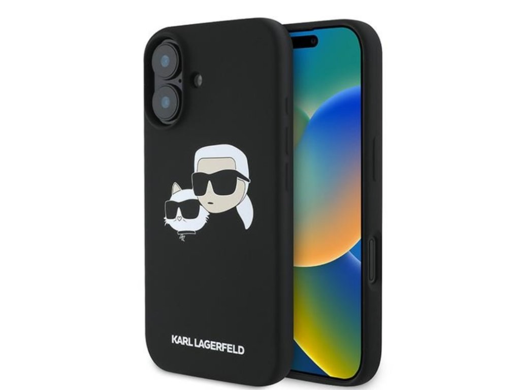 Karl Lagerfeld Silicone Double Heads Print MagSafe – Pouzdro iPhone 16 Plus (černé)