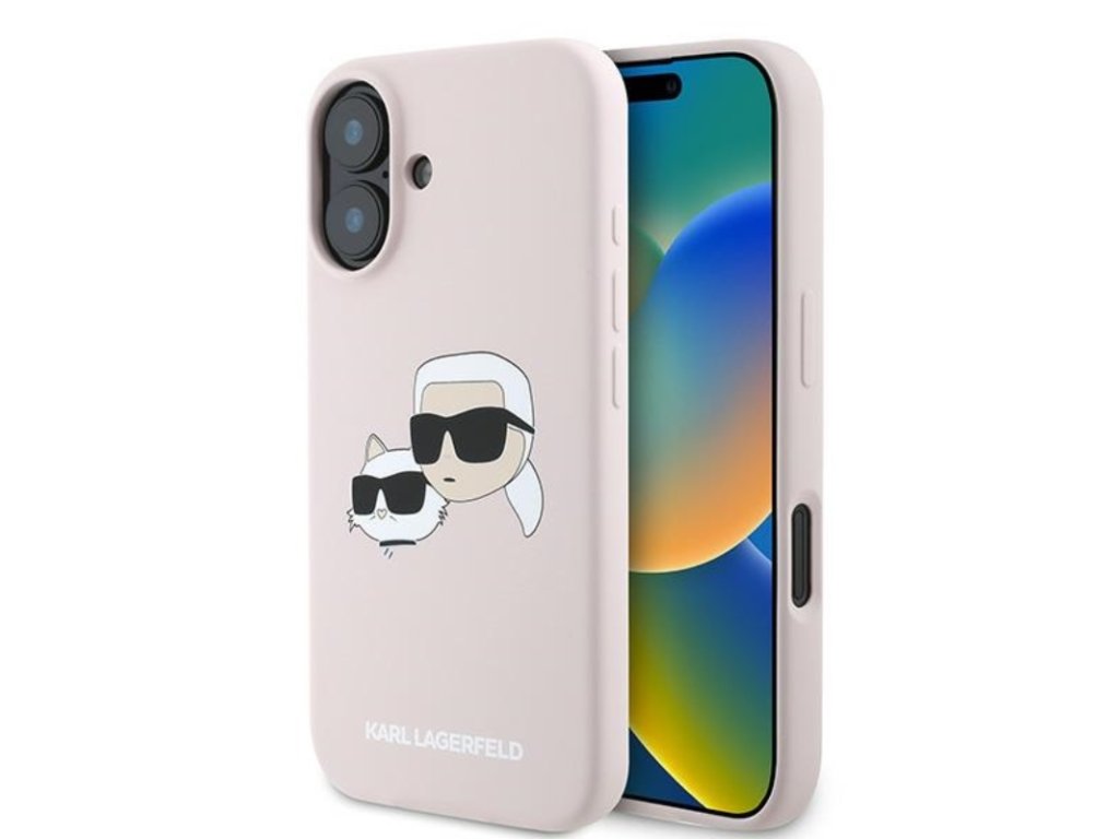 Karl Lagerfeld Silicone Double Heads Print MagSafe – Pouzdro iPhone 16 Plus (růžové)