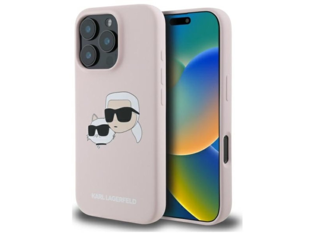 Karl Lagerfeld Silicone Double Heads Print MagSafe – Pouzdro iPhone 16 Pro (růžové)
