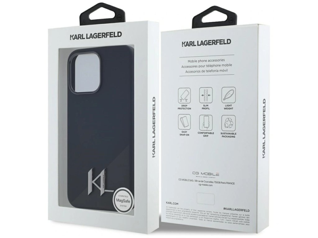 Karl Lagerfeld Silicone Shaw Metal Initial MagSafe Apple iPhone 15 Pro Max black
