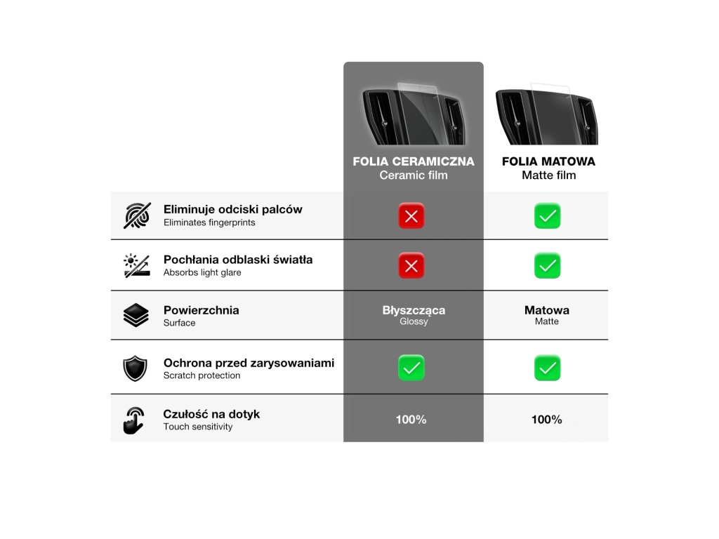 Matná fólie je druh ochranného povlaku, který snižuje odlesky a světelné odrazy na obrazovce, což zlepšuje viditelnost a čitelnost informací zobrazovaných na obrazovce za různých světelných podmínek.
