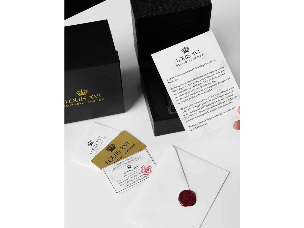 Každý detail hodinek Louis XVI je pečlivě navržen – od luxusního pouzdra, přes odolné safírové sklíčko, až po precizní mechanismus, který zajišťuje spolehlivost a dlouhou životnost.