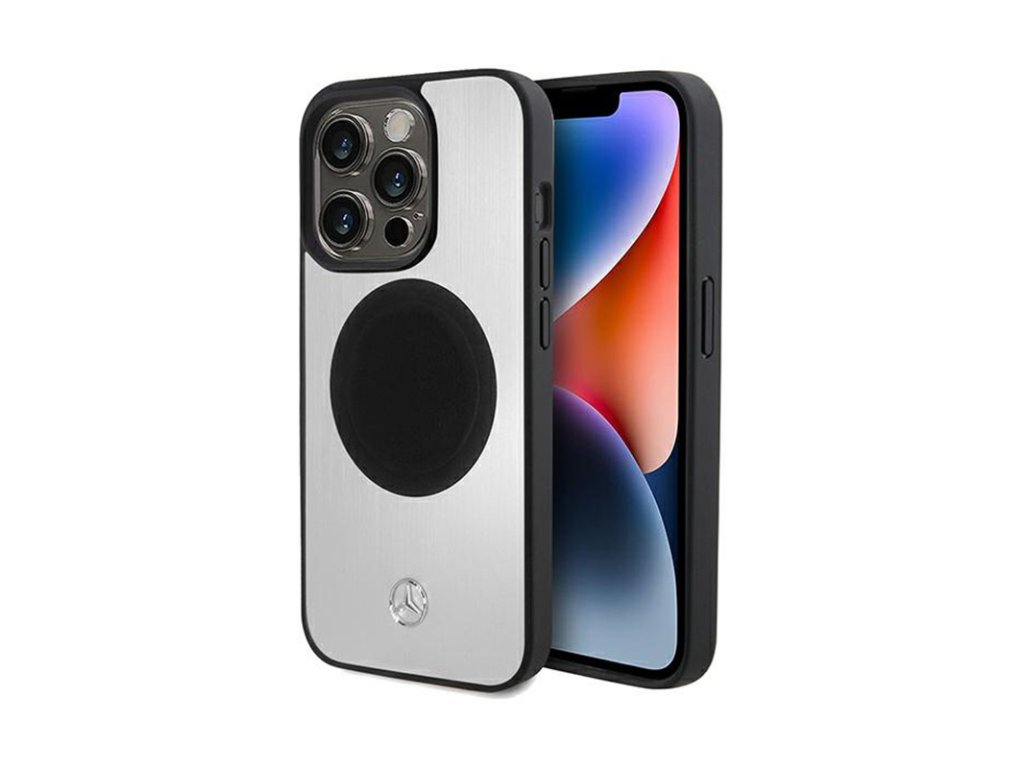 Mercedes Leather & Alu MagSafe - pouzdro pro iPhone 15 Pro (stříbrné)