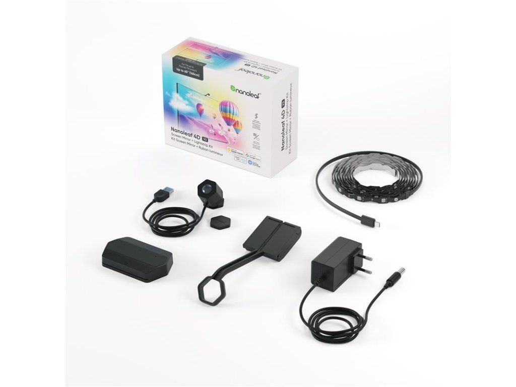 - Nanoleaf 4D V2 je sada se zrcadlovou kamerou a LED světelným páskem, která promění vaše oblíbené seriály, filmy a hry v ultra-pohlcující světelný zážitek. Sledujte, jak se živá záře rozlévá za hranice obrazovky a v reálném čase synchronizuje každou barvu na gradientním pásku za televizí. Pro ještě intenzivnější zážitek povolte v aplikaci Nanoleaf funkci „Sync+“, která rozšíří efekty synchronizace obrazu na všechna RGB světla Nanoleaf.