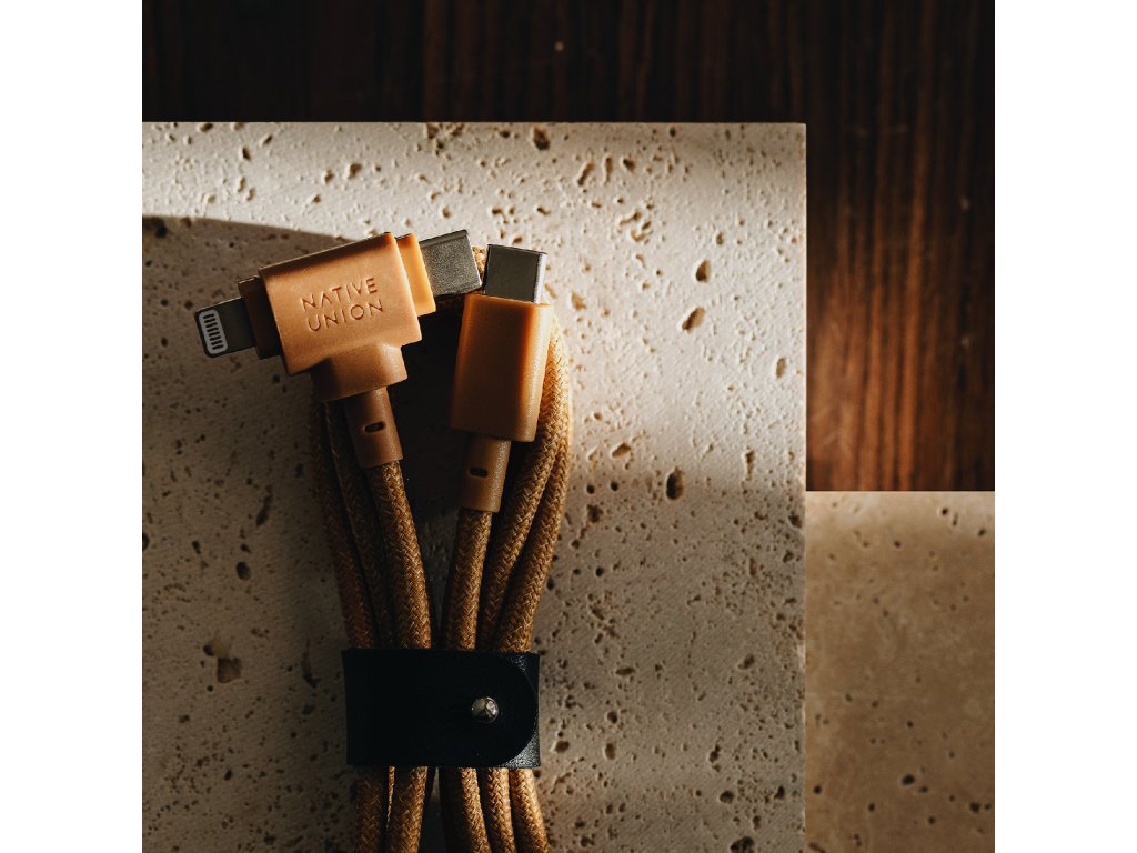 - tento jedinečný kabel pro více zařízení, navržený pro vynikající pohodlí a všestrannost, obsahuje konektory USB-C a Lightning a je vyroben podle