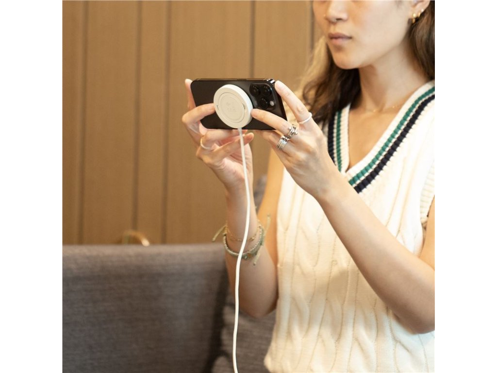 - Alternativní magnetické nabíjení pro iPhone a pouzdra kompatibilní s MagSafe (iPhone 12 a novější) Musí být spárováno s USB-C (≥20 W) (není součástí balení)