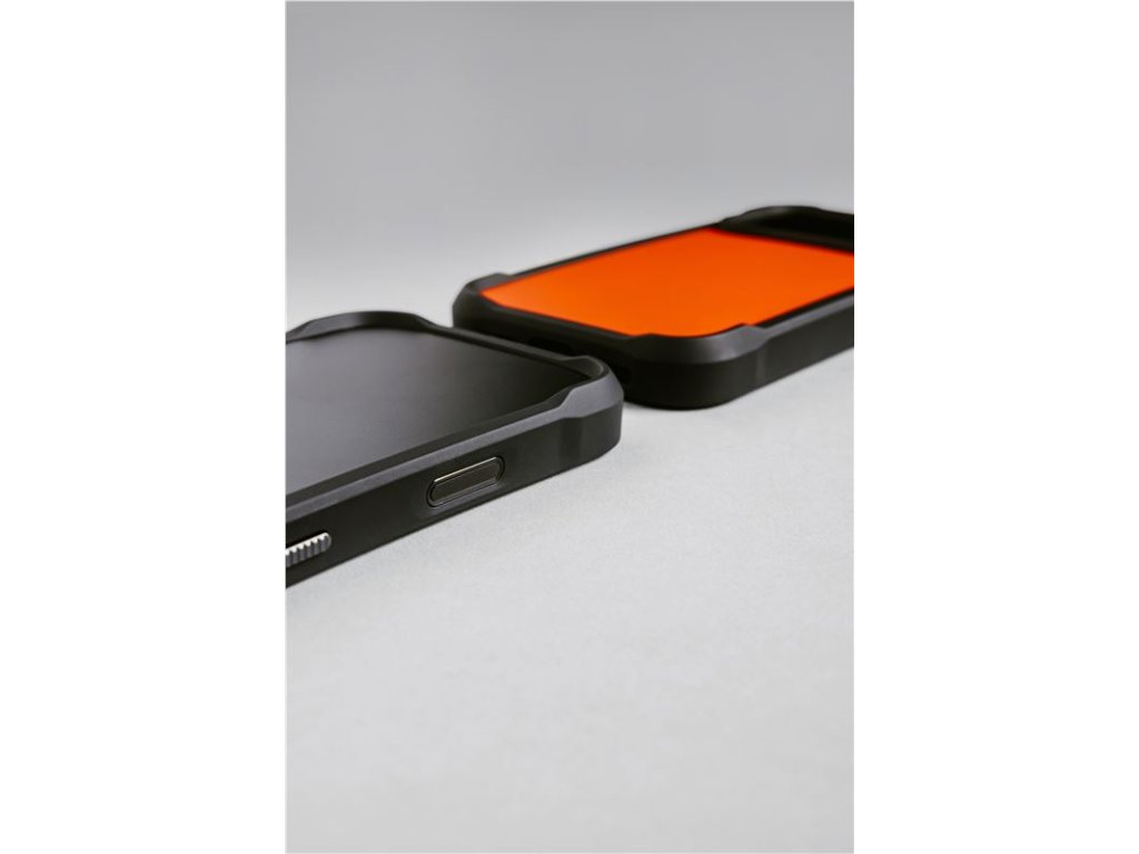 Odolný polykarbonátový rám a zesílené rohy absorbují nárazy a poskytují ochranu proti pádům z výšky až 4,5 metru. Matná zadní deska je hladká, zatímco drážkované rohy zajišťují snadné uchopení v ruce.