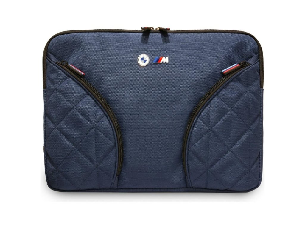 Nylonové kapsy a kovové logo BMW - brašna na notebook 14" (tmavě modrá)