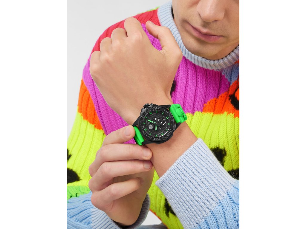 - Kolekce PLEIN obsahuje luxusní oblečení, módní doplňky a hodinky. Designově se jedná o výstřední, extravagantní a šokující modely s množstvím nápisů log a dalších detailů.