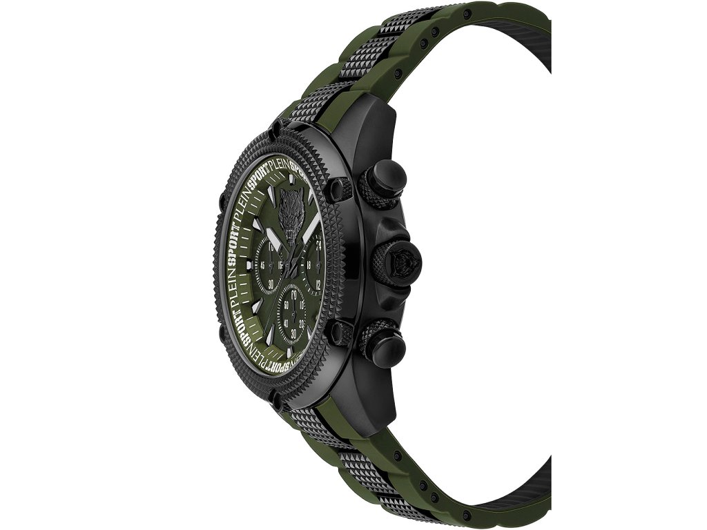 • Manufacturer no.: PSDBA0223 • Manufacturer series: Hurricane Chrono 44mm • Functions: 24-hours, Chronograph, Date, Minute, Second, Hour • Movement: Battery (quartz) • Dial color: Green • Display: Analog • Water resistant: 5 • Bezel: Fixed • Surface finish: Matted, Polished • Case color: Black • Case material: Stainless steel • Case thickness: 13 • Case shape: Round • Case width: 44 • Caseback: Stainless steel bottom, screwed • Gender: Mens • Glas: hardened, Mineral glass • Lighting: Illum. indexes, Illum. hands • Style: Fashion • Strap material: Stainless steel, Silicon • Strap color: Green, Black • Lug width: 22 • Clasp: Buckle clasp • Max wrist circumferences: 210 • Item weight: 0.11 • Scope of delivery: Instruction, Box, Warranty doc., Packaging