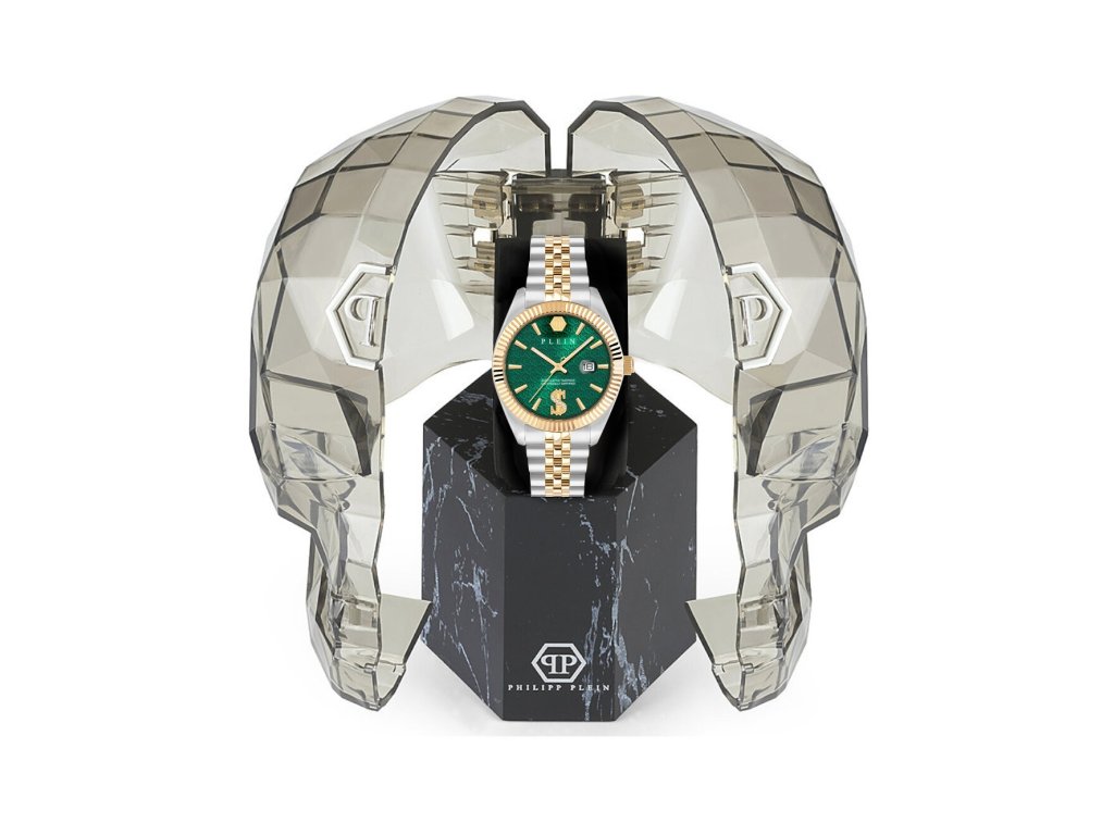 - Kolekce PLEIN obsahuje luxusní oblečení, módní doplňky a hodinky. Designově se jedná o výstřední, extravagantní a šokující modely s množstvím nápisů log a dalších detailů.