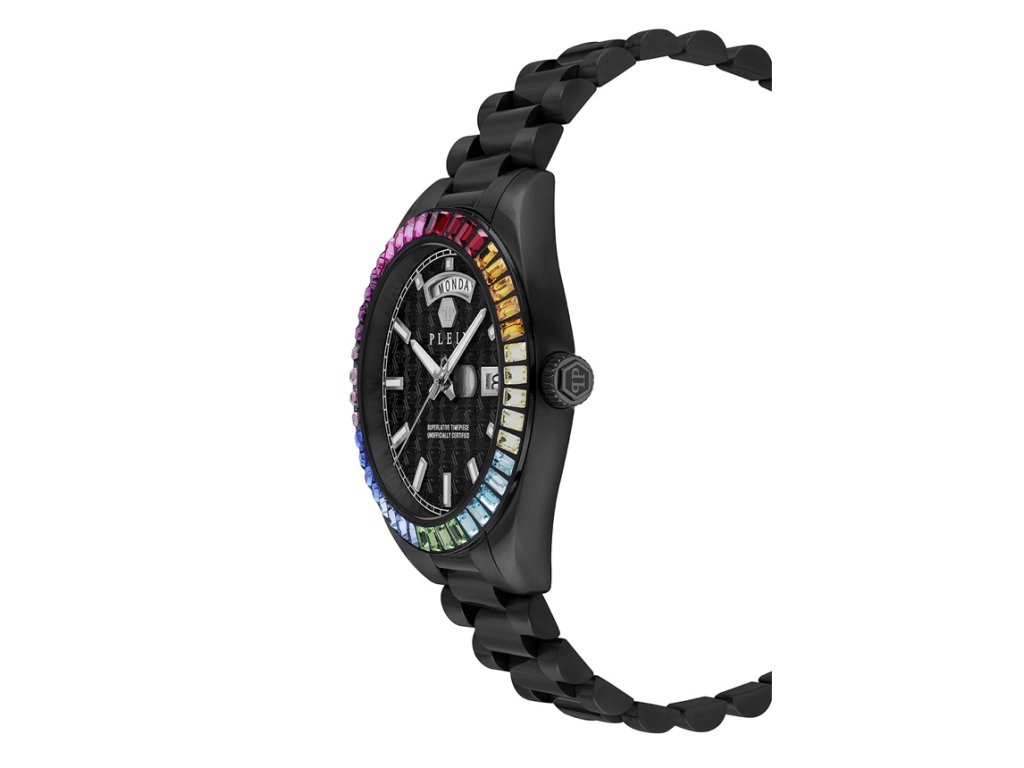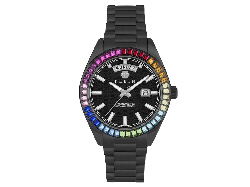 - Kolekce PLEIN obsahuje luxusní oblečení, módní doplňky a hodinky. Designově se jedná o výstřední, extravagantní a šokující modely s množstvím nápisů log a dalších detailů.