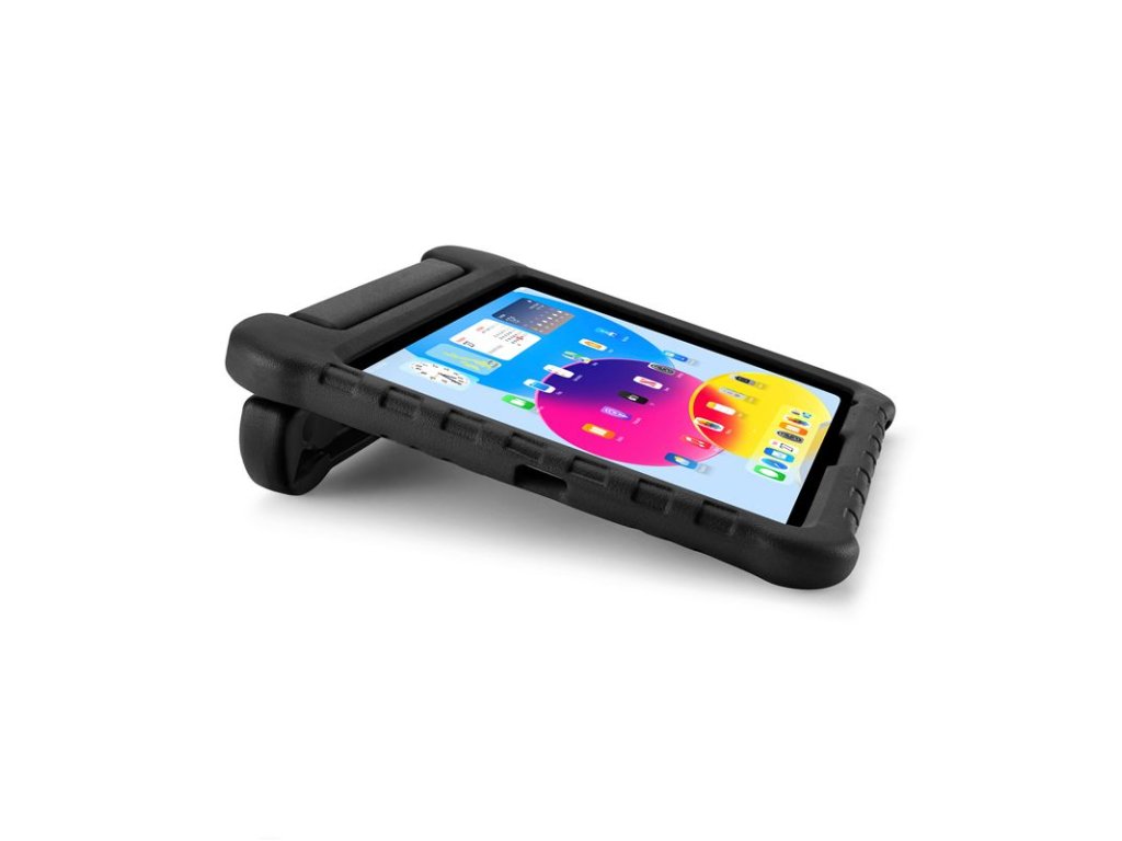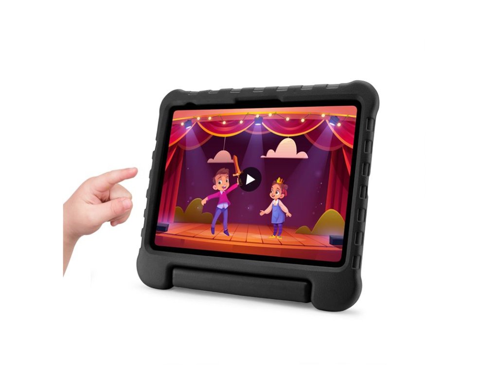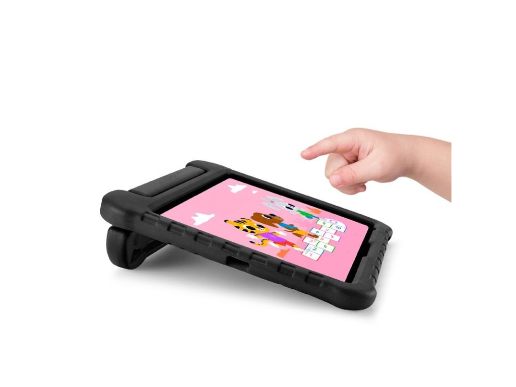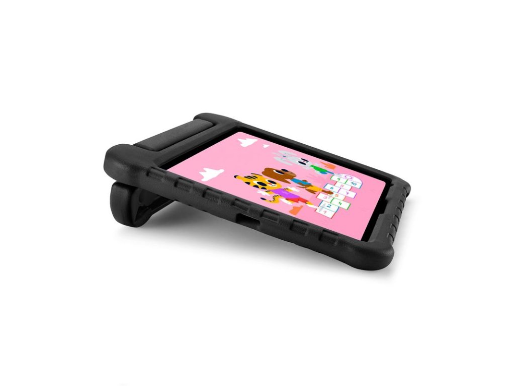 - Snadno uchopitelná rukojeť umožňuje malým rukám bezpečně držet obal při pohybu a zároveň slouží jako pevný stojánek pro sledování filmů nebo hraní her.