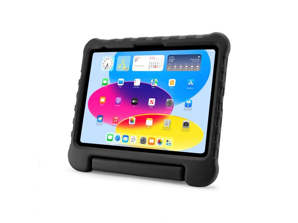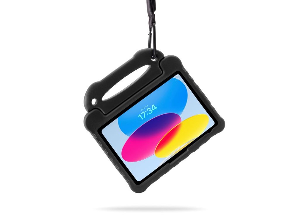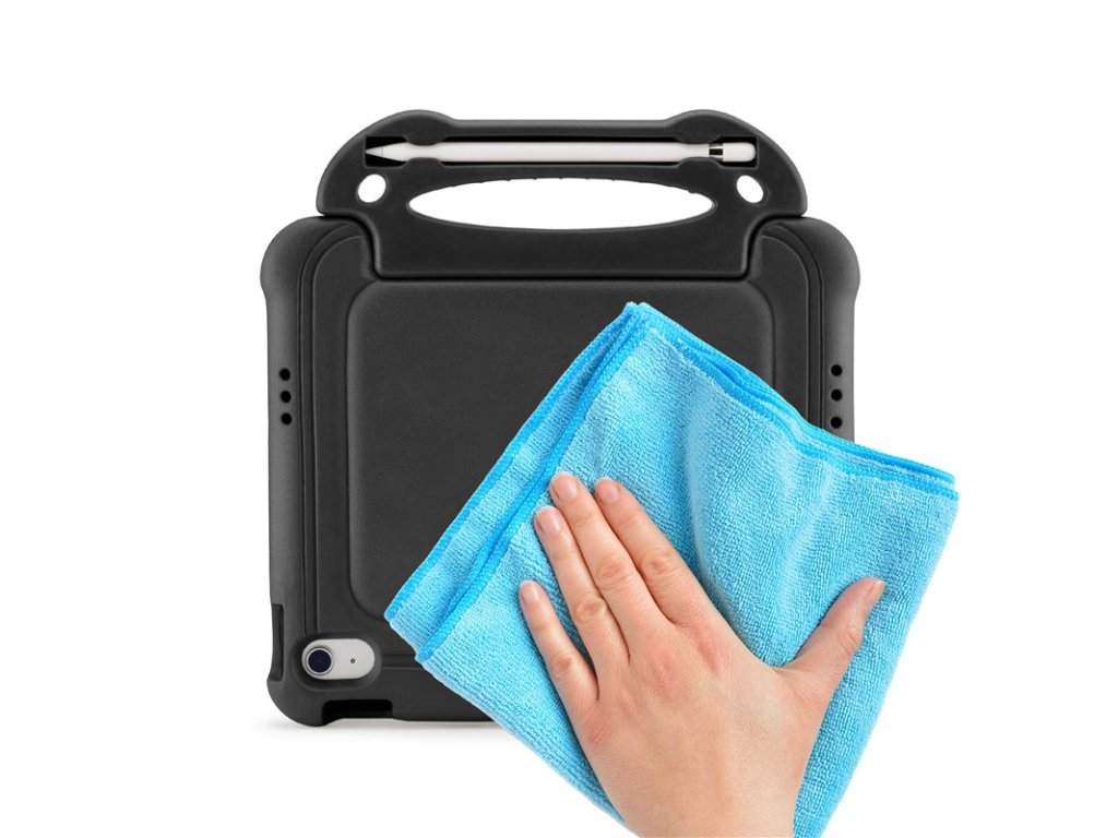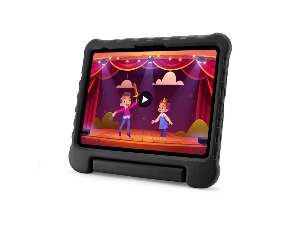 - Snadno uchopitelná rukojeť umožňuje malým rukám bezpečně držet obal při pohybu a zároveň slouží jako pevný stojánek pro sledování filmů nebo hraní her.
