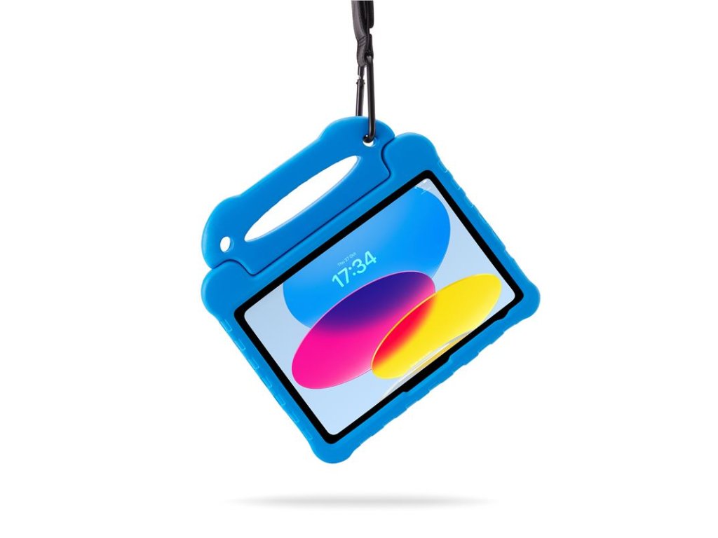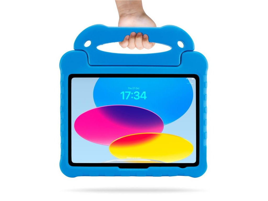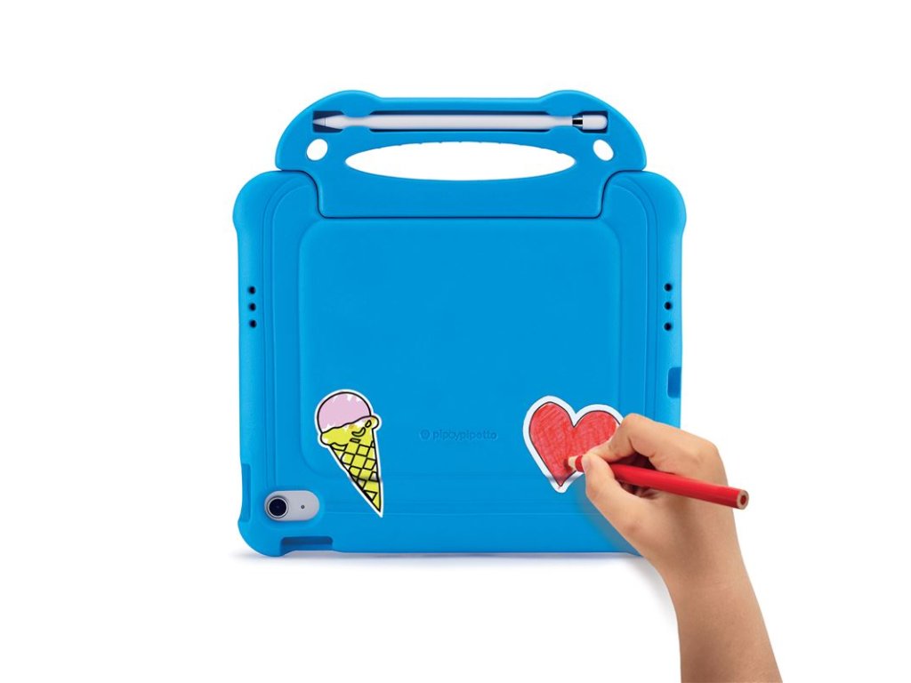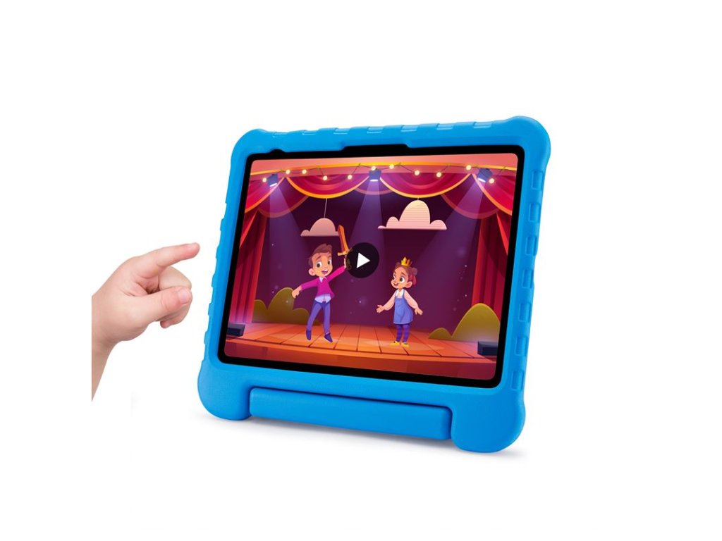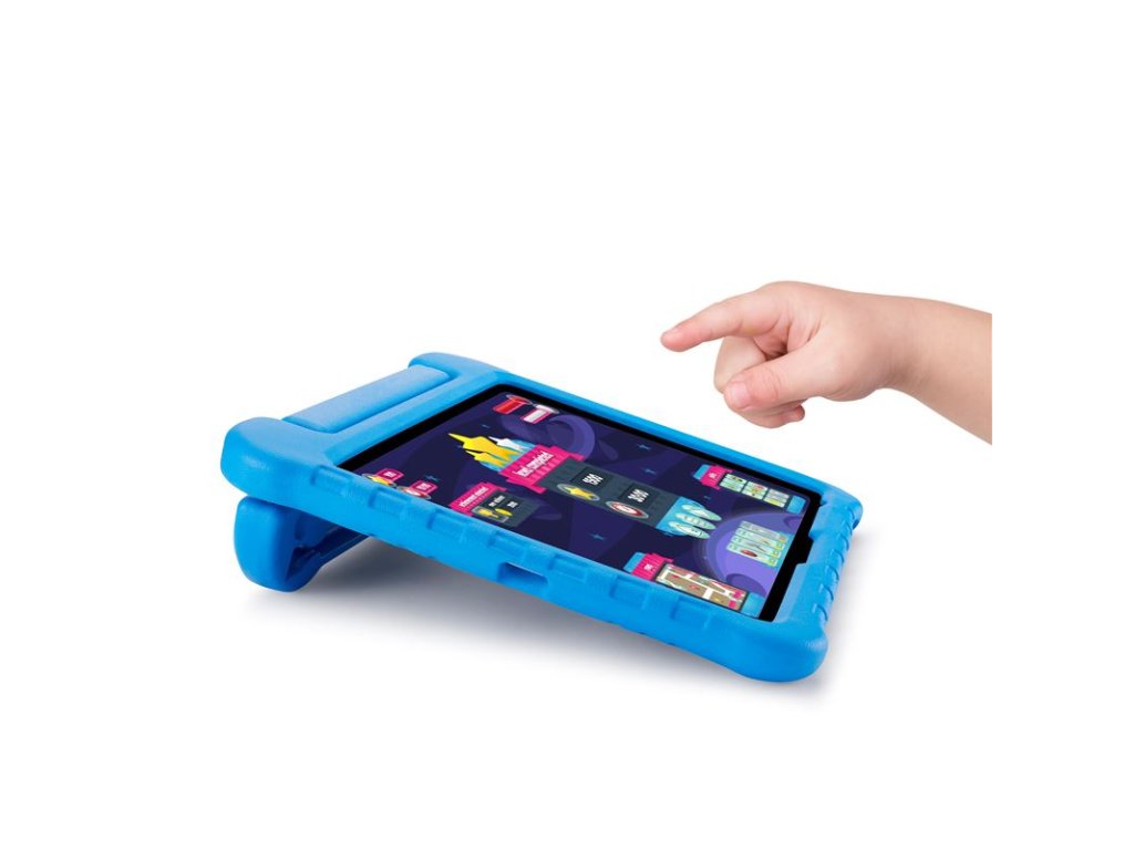 - Snadno uchopitelná rukojeť umožňuje malým rukám bezpečně držet obal při pohybu a zároveň slouží jako pevný stojánek pro sledování filmů nebo hraní her.