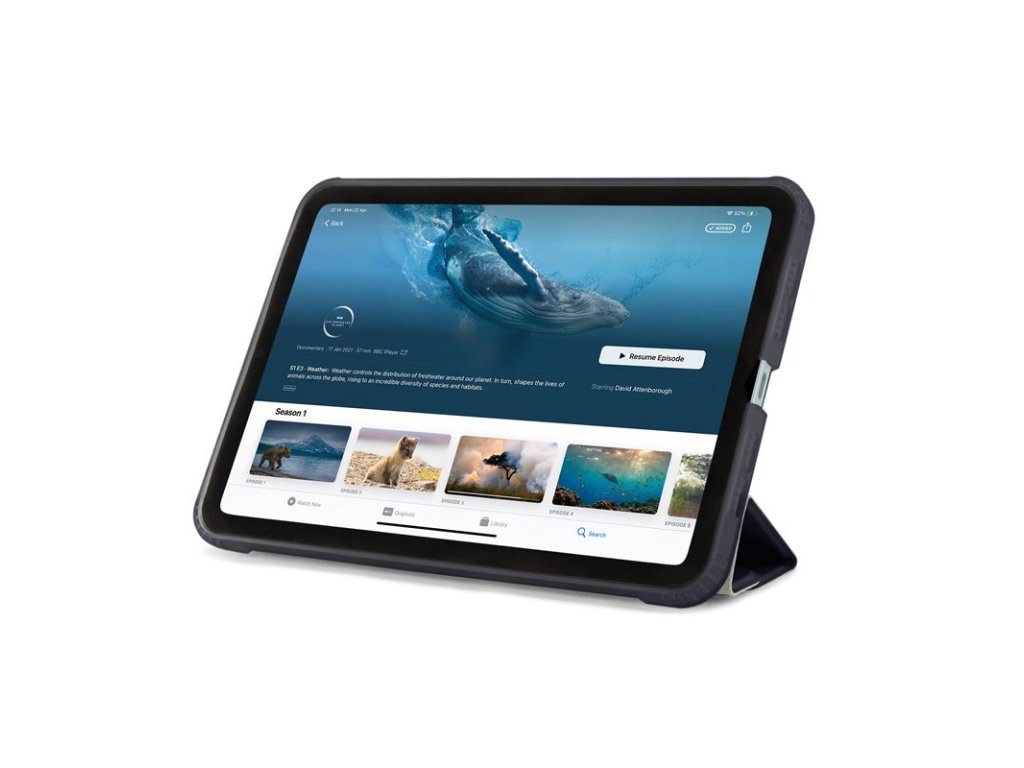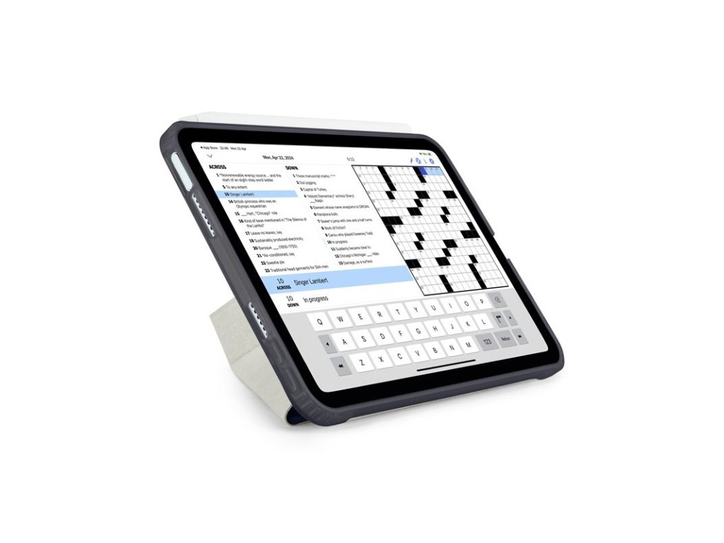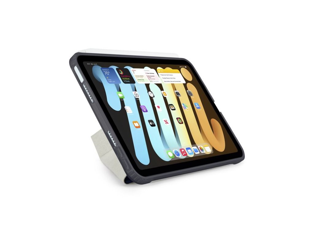 - Diskrétní drážka pro Apple Pencil na boku, která umožňuje synchronizaci a nabíjení Apple Pencil přes pouzdro, a funkci automatického uspání a probuzení, která prodlužuje výdrž baterie a umožňuje až o 20 % delší používání mezi jednotlivými nabitími.