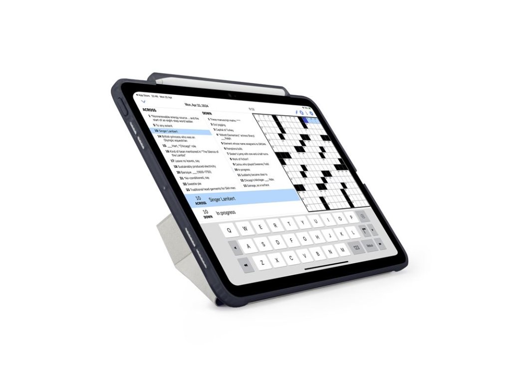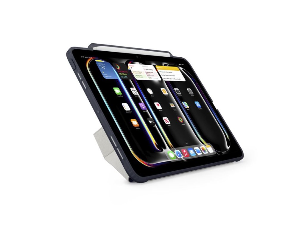 - Diskrétní drážka pro Apple Pencil na boku, která umožňuje synchronizaci a nabíjení Apple Pencil přes pouzdro, a funkci automatického uspání a probuzení, která prodlužuje výdrž baterie a umožňuje až o 20 % delší používání mezi jednotlivými nabitími.