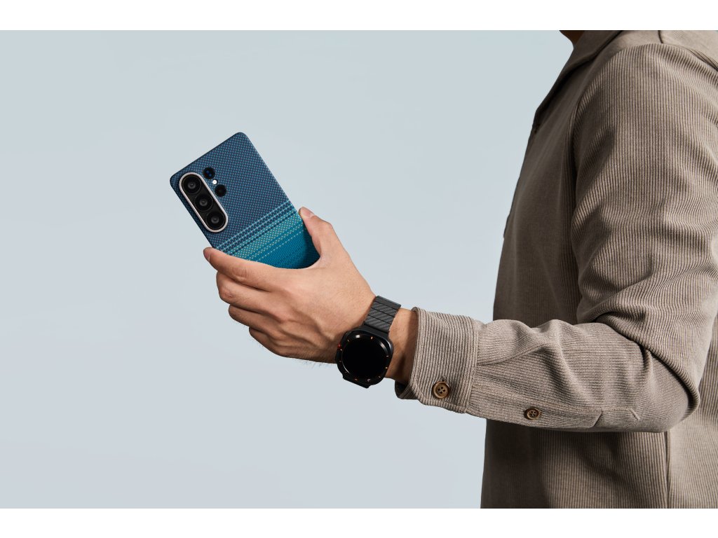 Pouzdro vyrobené z jemně tkaného aramidového vlákna, nabízí hedvábně hladkou a luxusní texturu, kterou ucítíte. Není jen lehké a pevné – je radost ho držet, a to pokaždé.
