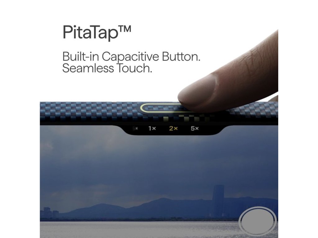 - PitaTap: Pouzdro o tloušťce méně než 1 mm chrání tlačítko pro ovládání fotoaparátu aramidovým vláknem, zatímco skrytá kapacitní vrstva umožňuje snadné klepání a posouvání. Díky hladké integraci zachovává aramidovou texturu pro přesné a citlivé ovládání.