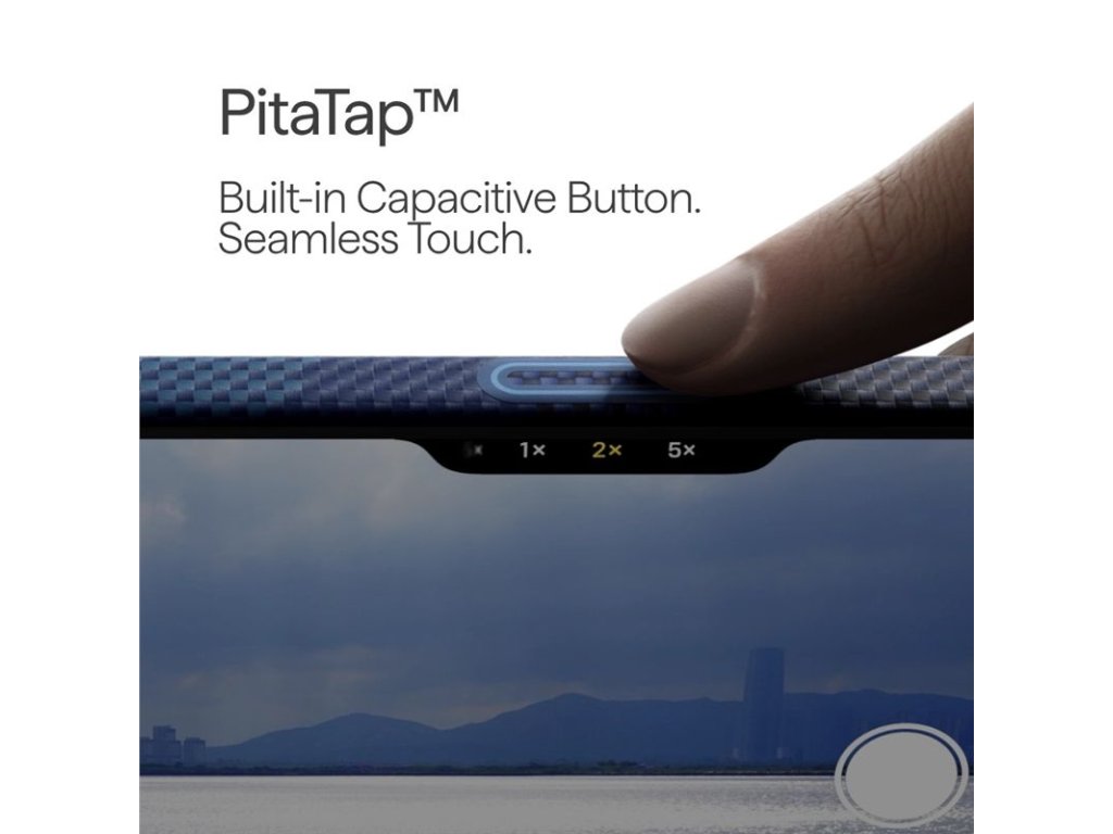 - PitaTap: Pouzdro o tloušťce méně než 1 mm chrání tlačítko pro ovládání fotoaparátu aramidovým vláknem, zatímco skrytá kapacitní vrstva umožňuje snadné klepání a posouvání. Díky hladké integraci zachovává aramidovou texturu pro přesné a citlivé ovládání.