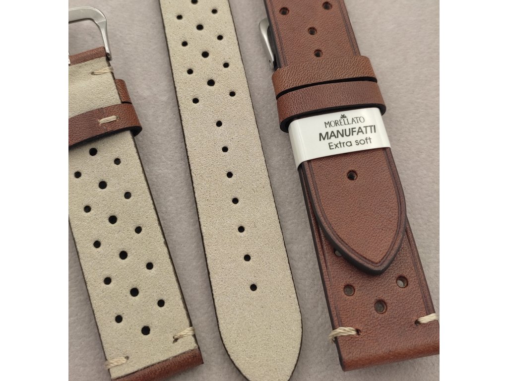 Řemínek na hodinky od firmy Morellato, modelové označení Brahms 5807B71.041. Ručně dělaný řemínek. Materiál řemínku je textil a kůže. Dostupný je v šířce 18 až 22 mm. Řemínek dodáváme včetně 2 ks stěžejek. Spodní strana řemínku je z mikrovlákna, které je velmi příjemné na ruce.