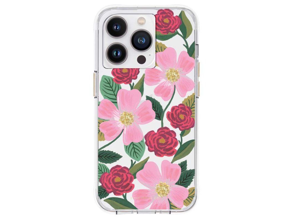 Rifle Paper Clear – pouzdro zdobené zlatem pro iPhone 14 Pro Max (Rose Garden)