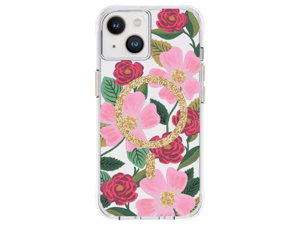 Rifle Paper Clear MagSafe - pouzdro zdobené zlatou barvou pro iPhone 14 / iPhone 13 (Rose Garden)