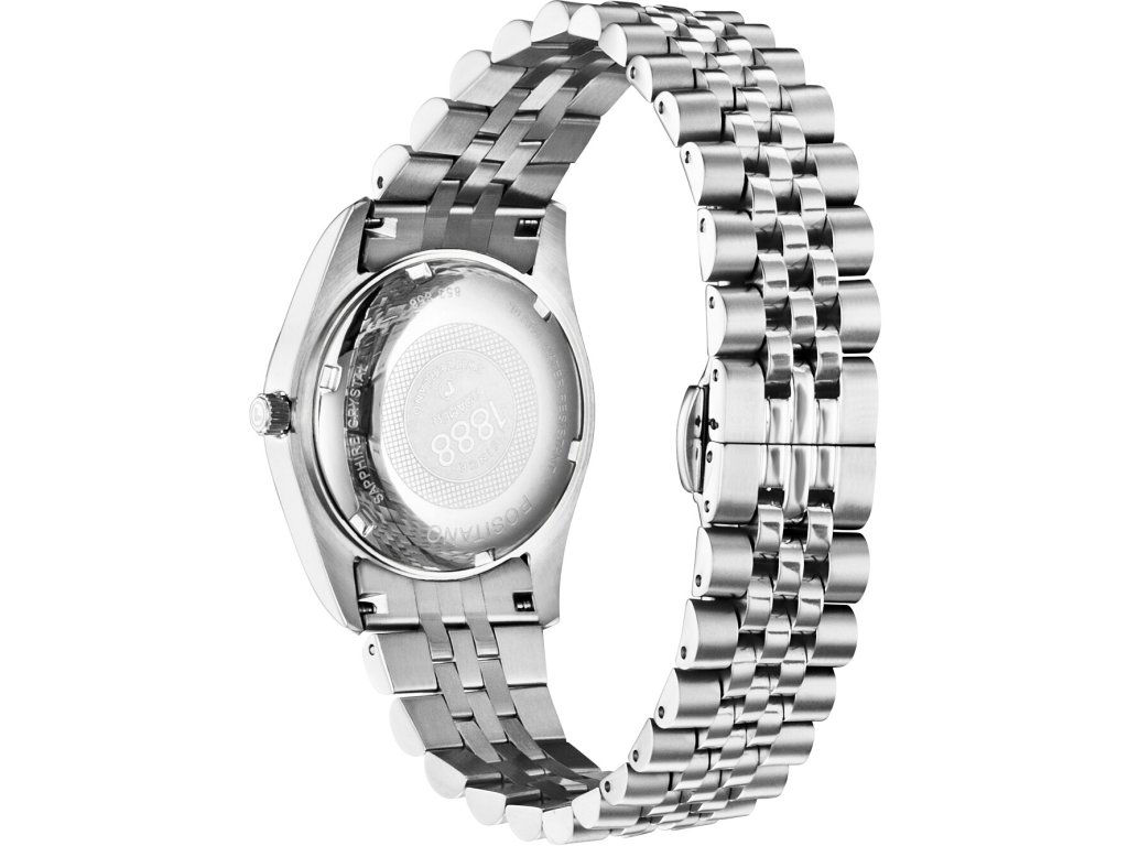 • Manufacturer no.: 853858 41 49 20 • Manufacturer series: Positano 34mm 10ATm • Functions: Date, Minute, Second, Hour • Movement: Battery (quartz) • Movement label: 505, Ronda, Swiss Made • Dial color: Blue • Display: Analog • Water resistant: 10 • Bezel: Fixed • Surface finish: Matted, Polished • Case color: Silver • Case material: Stainless steel • Case thickness: 11 • Case shape: Cushion • Case trimming: Zirconia • Case width: 34 • Caseback: Stainless steel bottom, screwed • Gender: Ladies • Glas: anti-reflecting, Saphire glass • Lighting: Illum. hands • Style: Elegant • Strap material: Stainless steel • Strap color: Silver • Lug width: 19 • Clasp: Butterfly clasp • Max wrist circumferences: 195 • Item weight: 0.17 • Scope of delivery: Instruction, Box, Warranty doc., Packaging