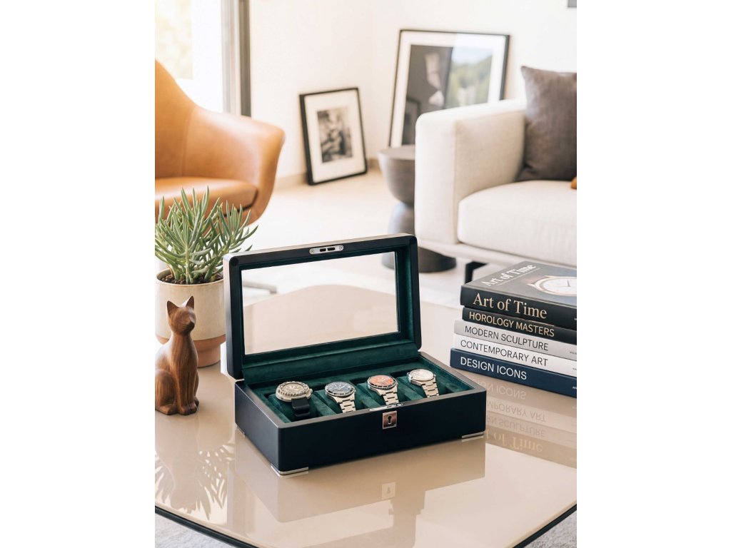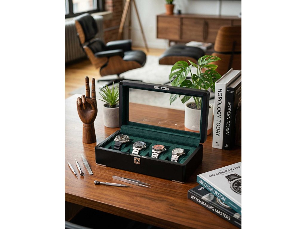 Rothenschild RS-3420-4-BL-GRE Watch Box Black [4] with green velvet