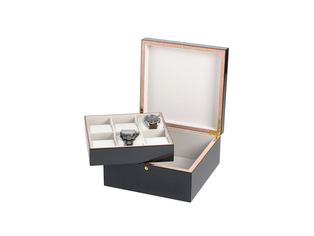 • Manufacturer no.: RS-5598-6 • Manufacturer series: Watches & jewelry box [6] • Color: Grey • Material: Wood, Velvet • X storing: 6 • Dimensions: 260 x 260 125 • Item weight: 2.3