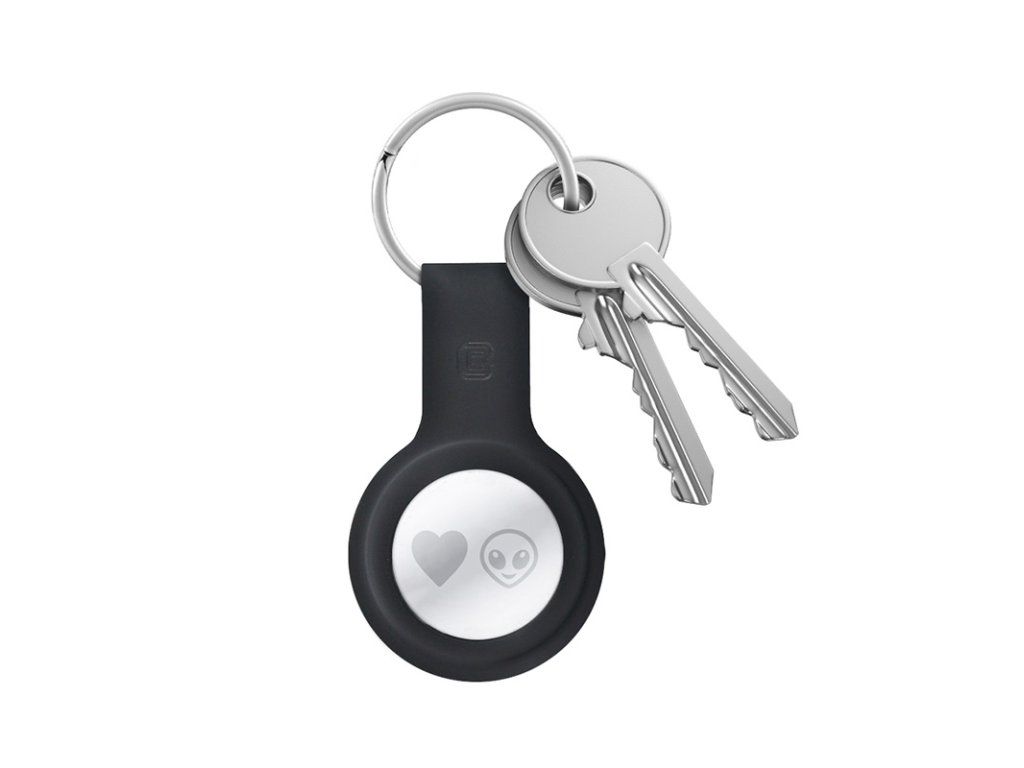 Silikonové pouzdro Crong s klíčenkou – Ochranné pouzdro s klíčenkou pro Apple AirTag 1/2 (černé)