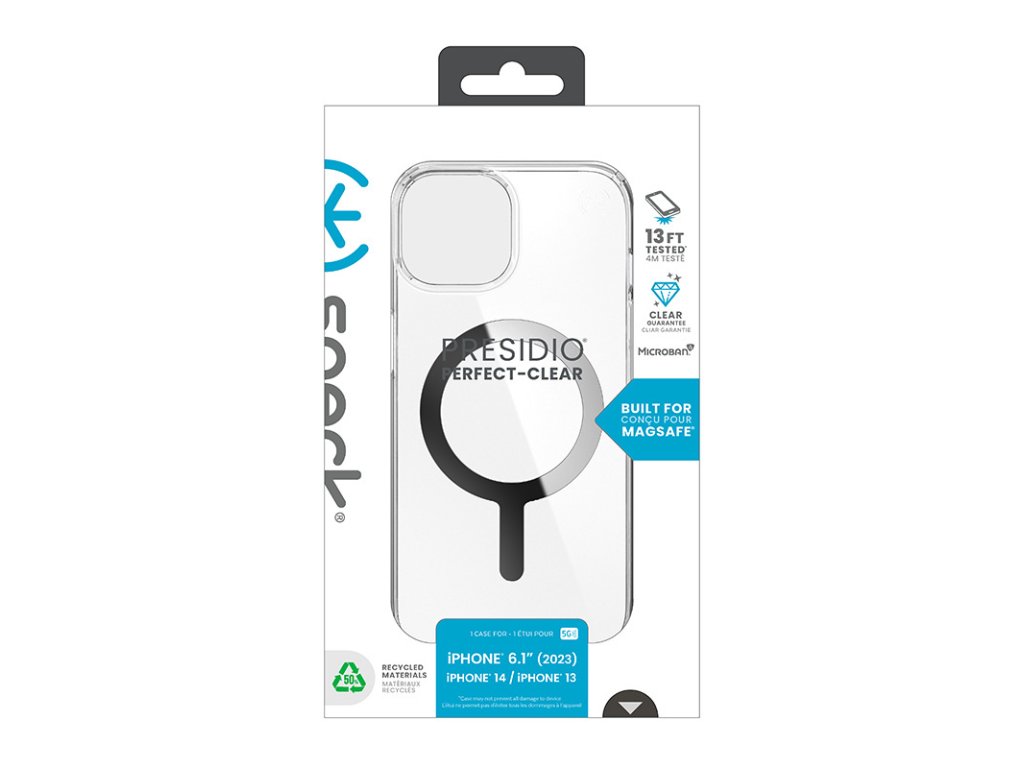 Presidio® Perfect Clear Magsafe je průhledné pouzdro se zabudovaným magnetem, kompatibilní s příslušenstvím Apple MagSafe®.