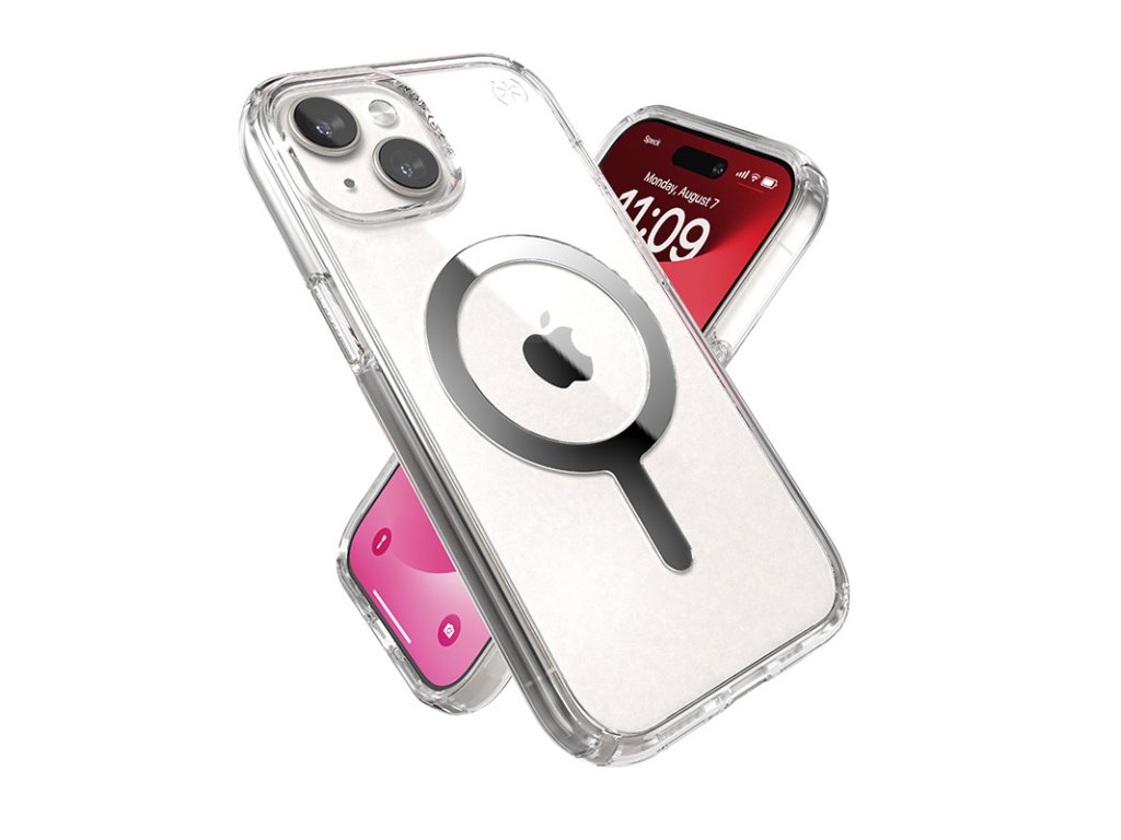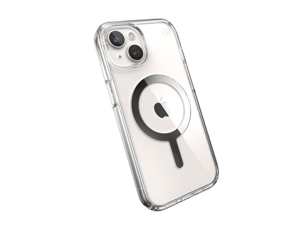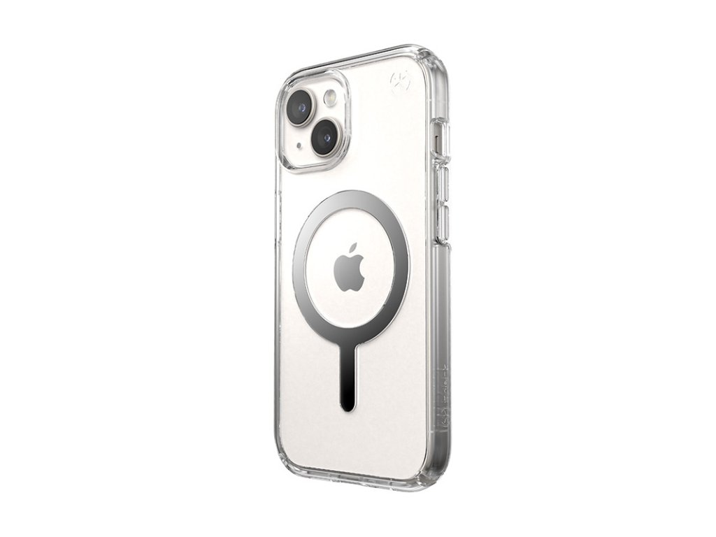 Speck Presidio Perfect-Clear MagSafe Apple iPhone 15 (Clear/Chrome Finish/Serene Silver)