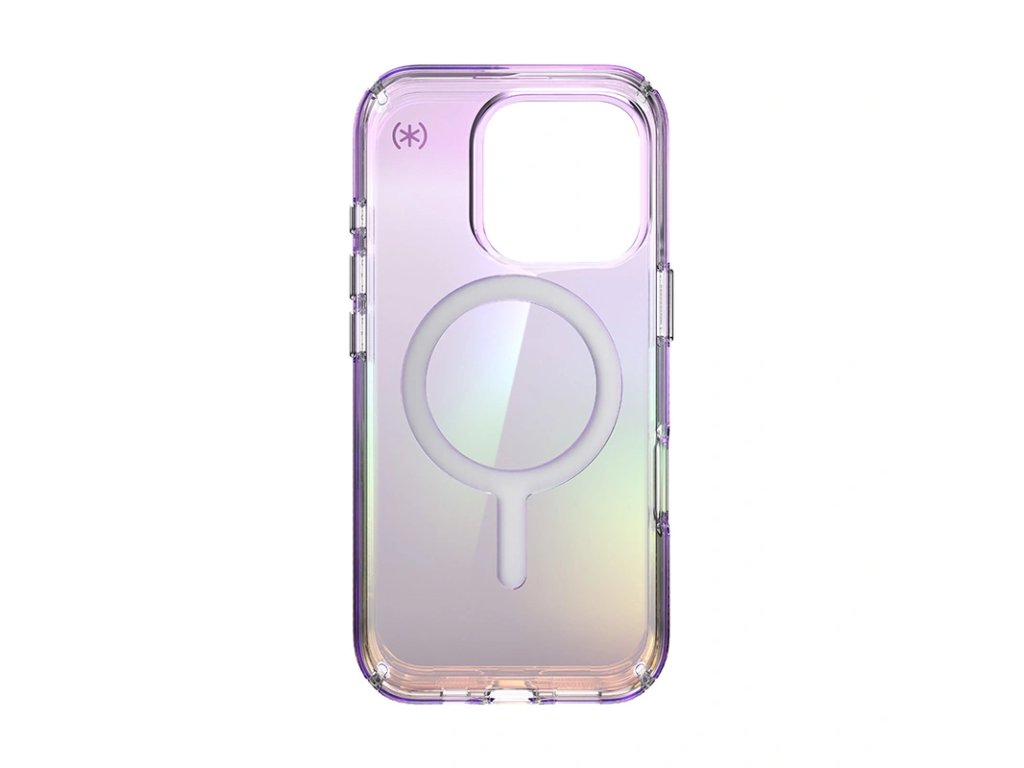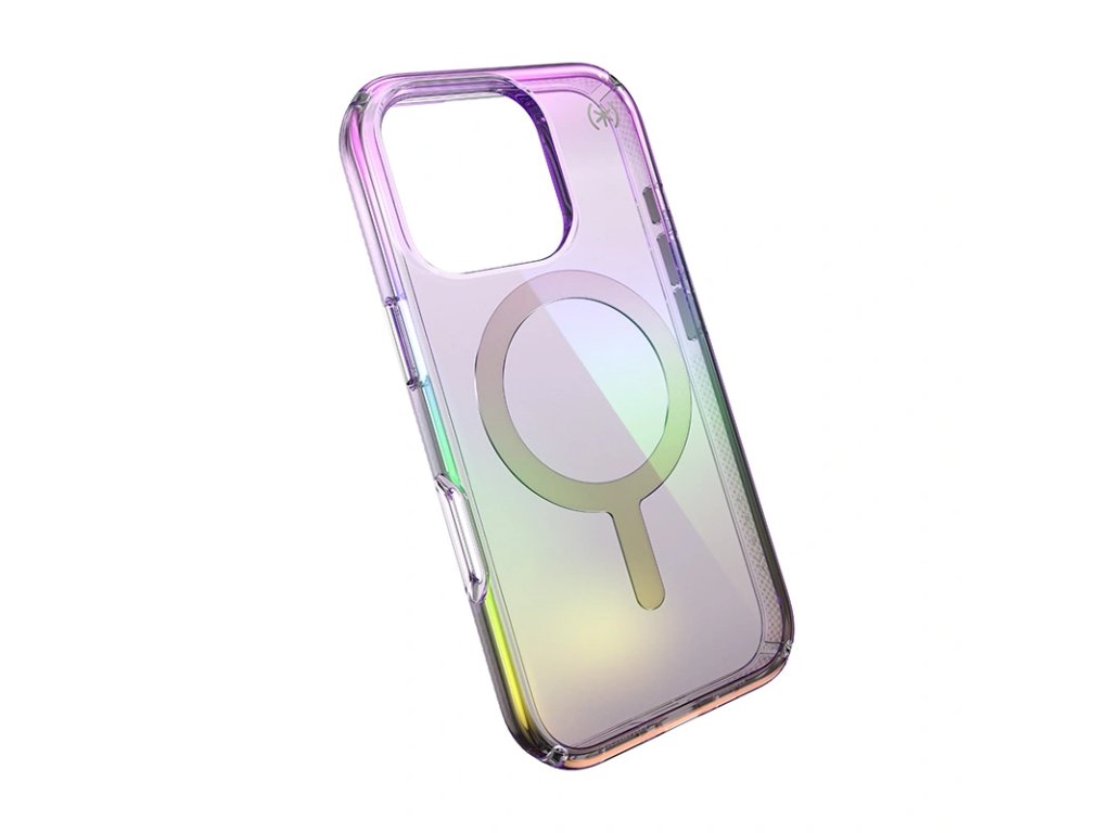 Vlastnosti produktu: · Holo efekt – barvy, které se ve světle třpytí · Vestavěný magnetický kroužek kompatibilní se všemi doplňky Apple MagSafe® · Chromovaná povrchová úprava magnetického kroužku · Odolává pádům z výšky až 4 metrů (technologie Clear dopad) · Aktivní antimikrobiální ochrana MICROBAN® · Zvýšená obrazovka a rámeček fotoaparátu · Vyrobeno z 50 % z recyklovaného plastu (www.speckeco.com) · Kompatibilní s bezdrátovými nabíječkami Qi · Neblokuje bezkontaktní platby Apple Pay · Kompatibilní s nabíječkou Apple MagSafe Charger