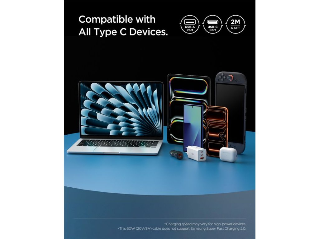 Spigen Essential USB A to USB C 60W Cable, white EB6010AC