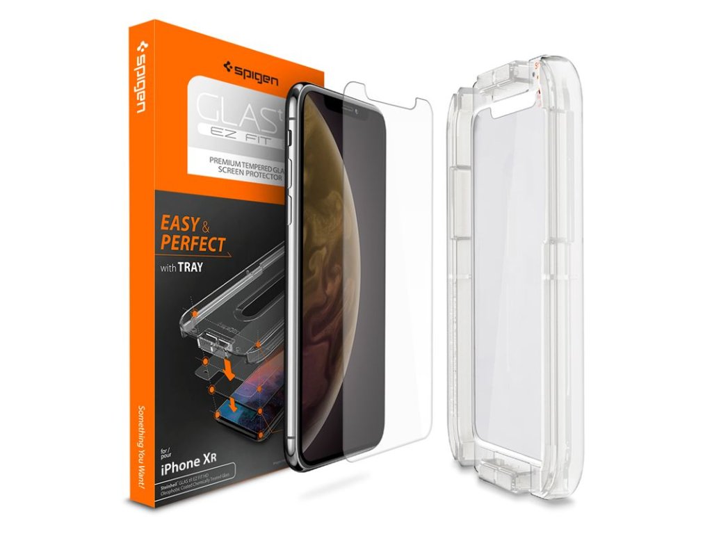 Spigen GLAS.tR EZ Fit - ochranné sklo s aplikačním nástrojem pro iPhone XR