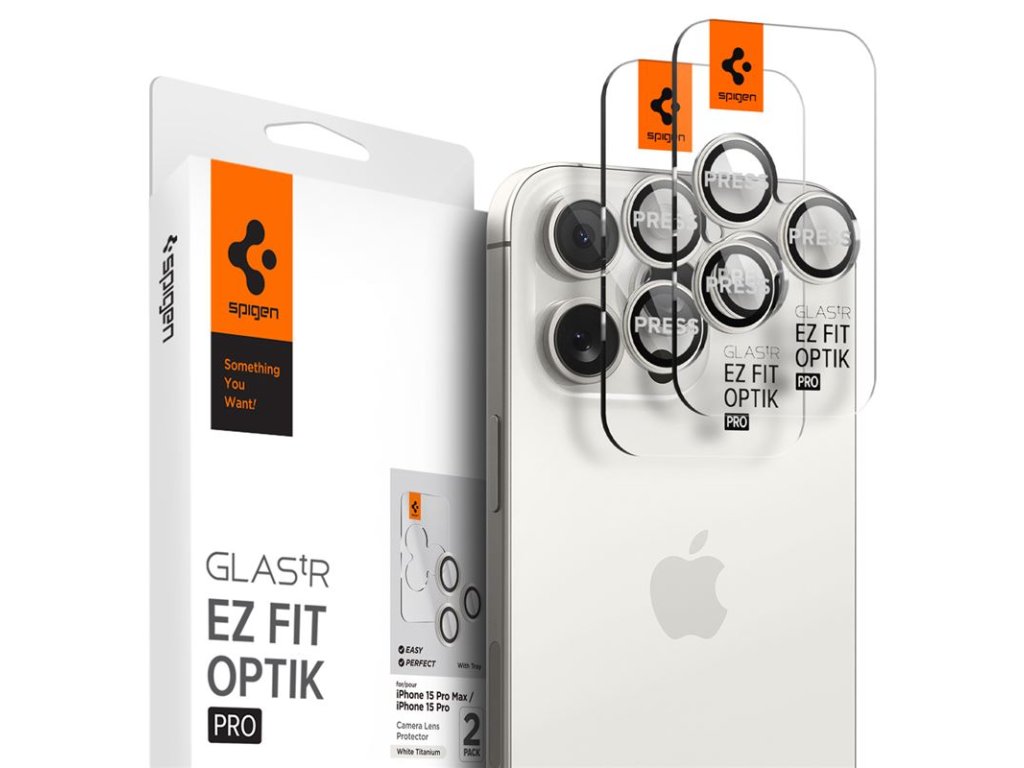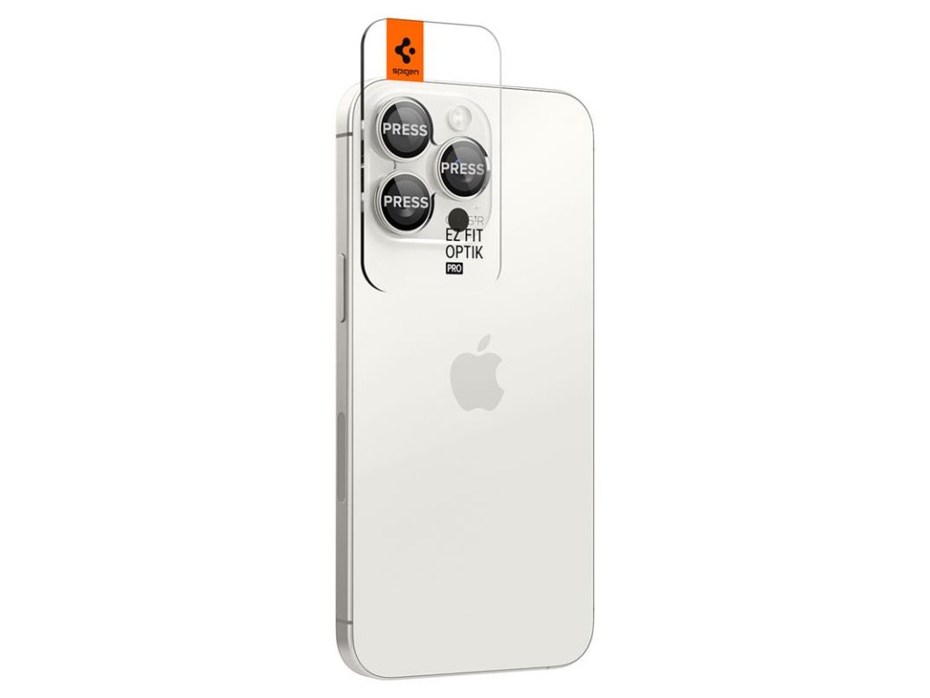 Spigen Glass tR EZ Fit Optik Pro 2 Pack, white tita - iPhone 17/16/15 Pro / 17/16/15 Pro Max