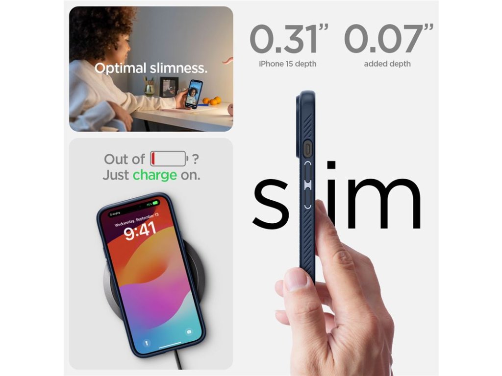 - Thin Fit – ultratenký kryt pro minimalistický vzhled a lehkost.