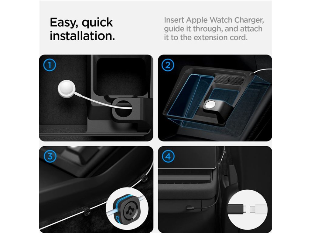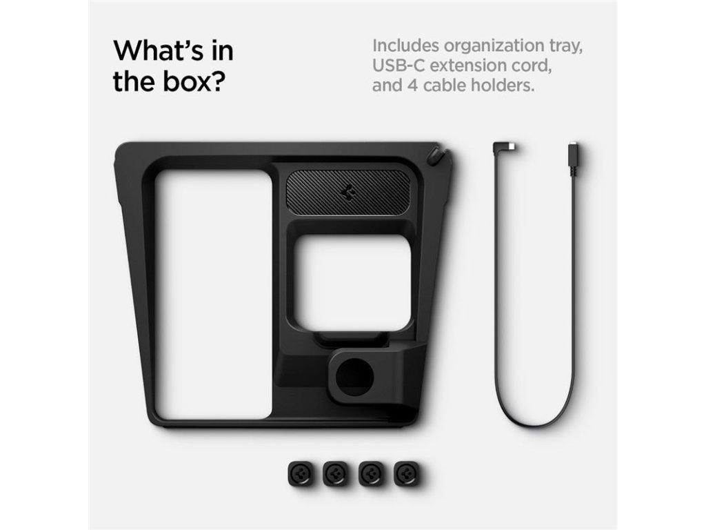 - snadná správa kabelů: dodává se s 60cm prodlužovacím kabelem USB-C a 4 organizéry kabelů (nabíječka Apple Watch není součástí balení)
