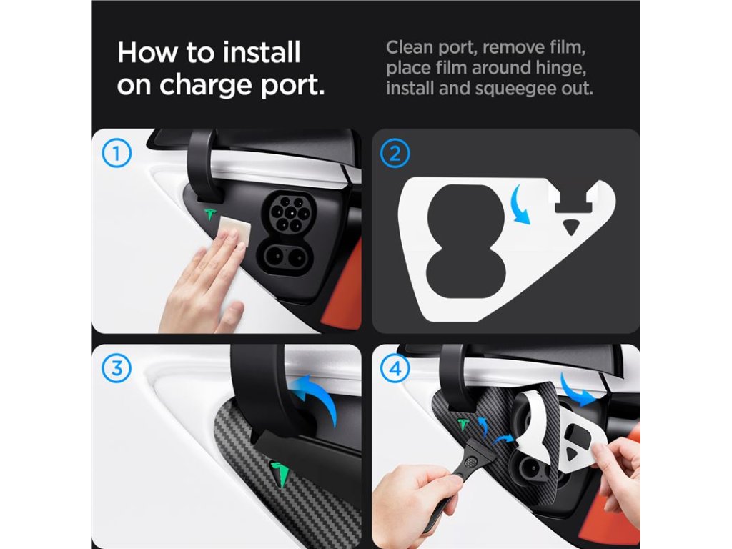Spigen Tesla Protective Film and Wrap Set for Charge Port (EU), carbon - Tesla Model Y/3