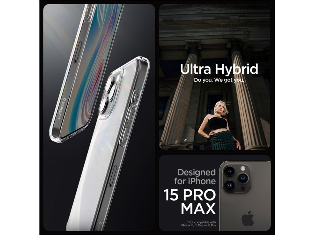 - Ultra Hybrid – kombinace čirého tvrdého zadního krytu a měkkého rámu. Chrání a zároveň nechá vyniknout design telefonu.