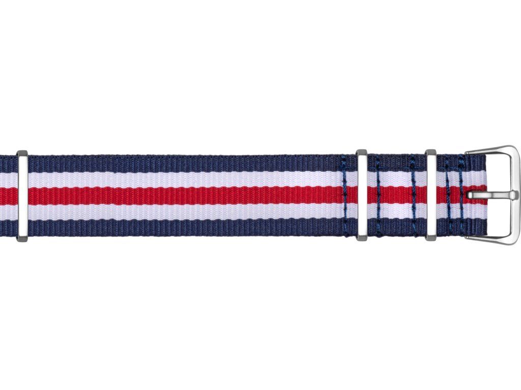 Řemínek na hodinky od firmy A-nis, modelové označení ANN001.30. Materiál řemínku je textil. Dostupný je v šířce 18 až 22 mm. Řemínek dodáváme včetně 2 ks stěžejek.