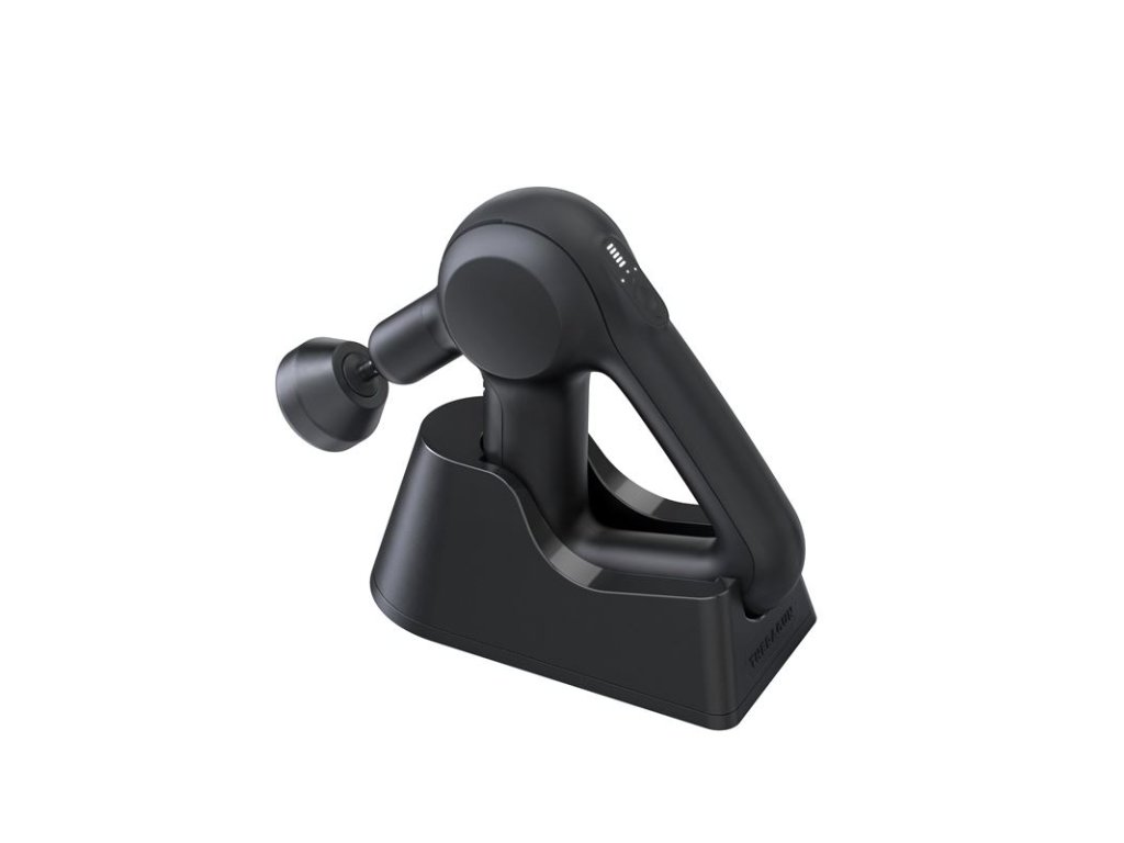 - 3. Umístěte přístroj Theragun Prime do kolébky nabíjecího stojanu a zatlačte jej dopředu, dokud nebude zcela zasunut.