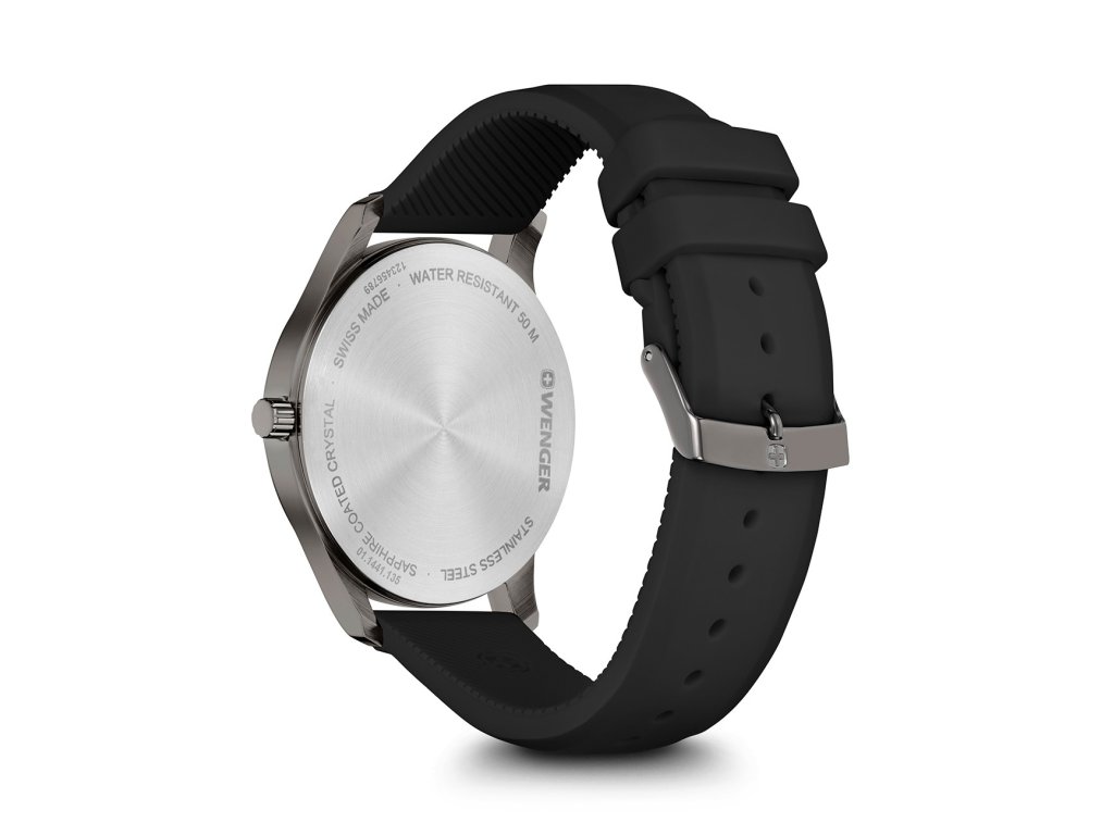 - Veškeré hodinky značky WENGER se mohou pyšnit označením SWISS MADE a jsou kryté odolným safírovým sklem.